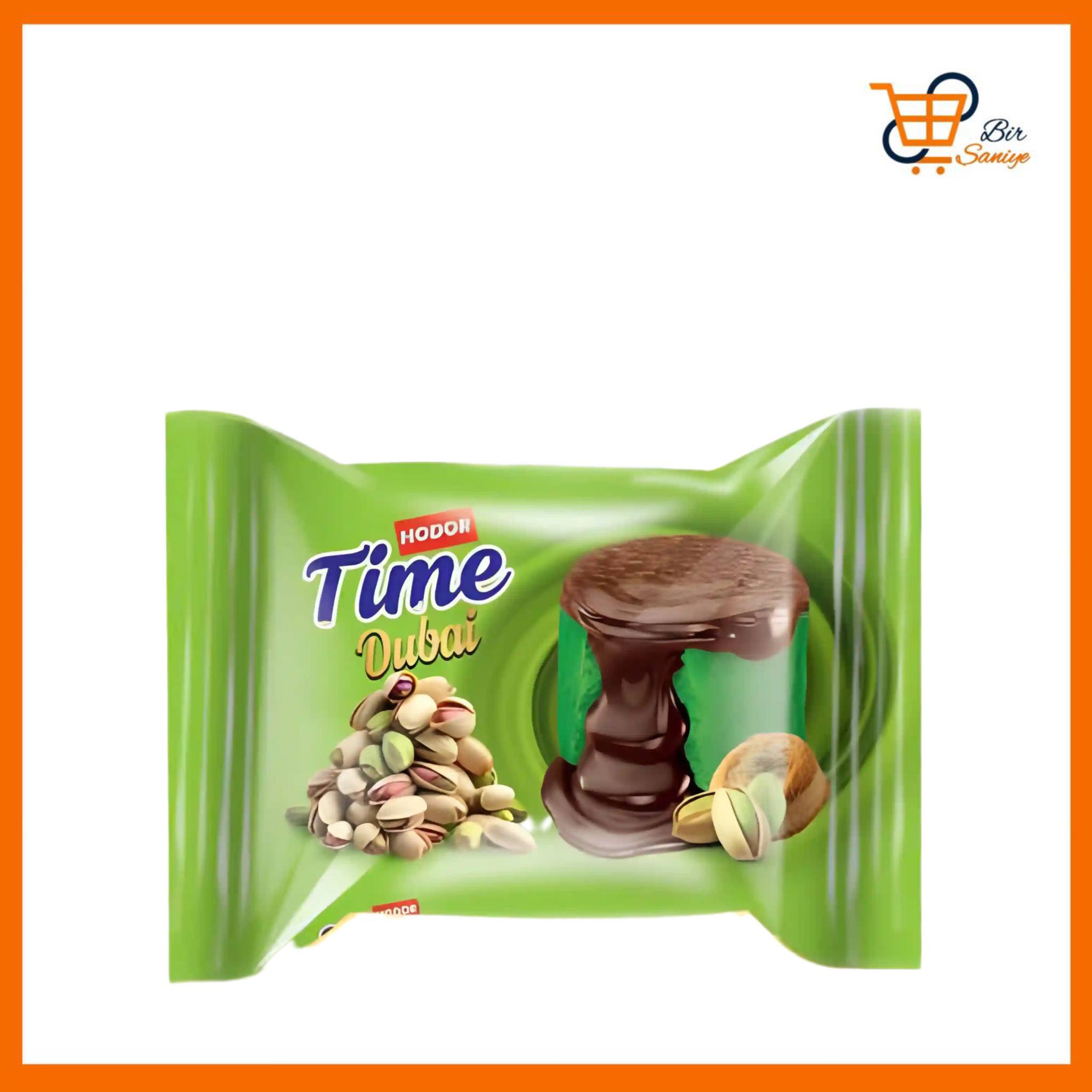 Hodor Time Dubail کیکی نرم و لطیف است که با عطر و طعم پسته تازه ترکیب شده و با یک لایه شکلات مایع و خوش طعم پوشیده شده است. رنگ سبز کیک نشان دهنده استفاده از پسته با کیفیت بالا است. این محصول مناسب مصرف به عنوان میانوعده، دسر یا همراه با چای و قهوه میباشد. بستهبندی جداگانه تضمین تازه ماندن هر قطعه و امکان استفاده آسان در هر زمان را فراهم میکند.