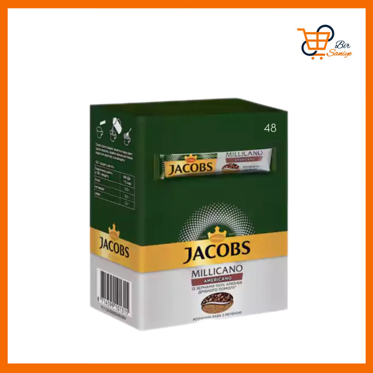 - Jacobs Millicano — بسته قهوه (بستهبندی نشان میدهد 48 عدد ساشه)