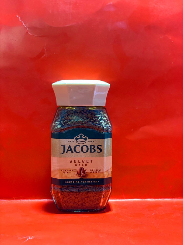 - برچسب طلایی با نوشتهی JACOBS و عبارت VELVET GOLD.